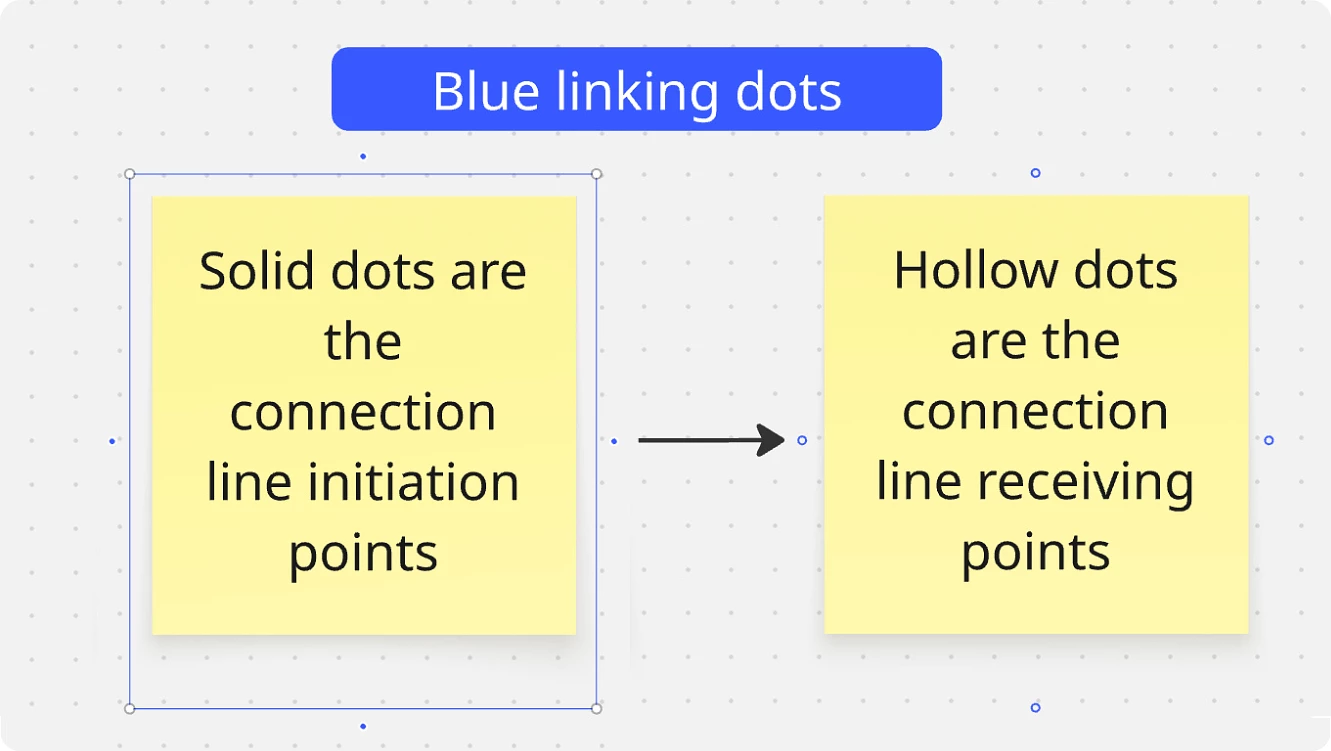 The Structuring board content help center article refers to these dots as the "blue linking dots". And, there are two styles/purposes: