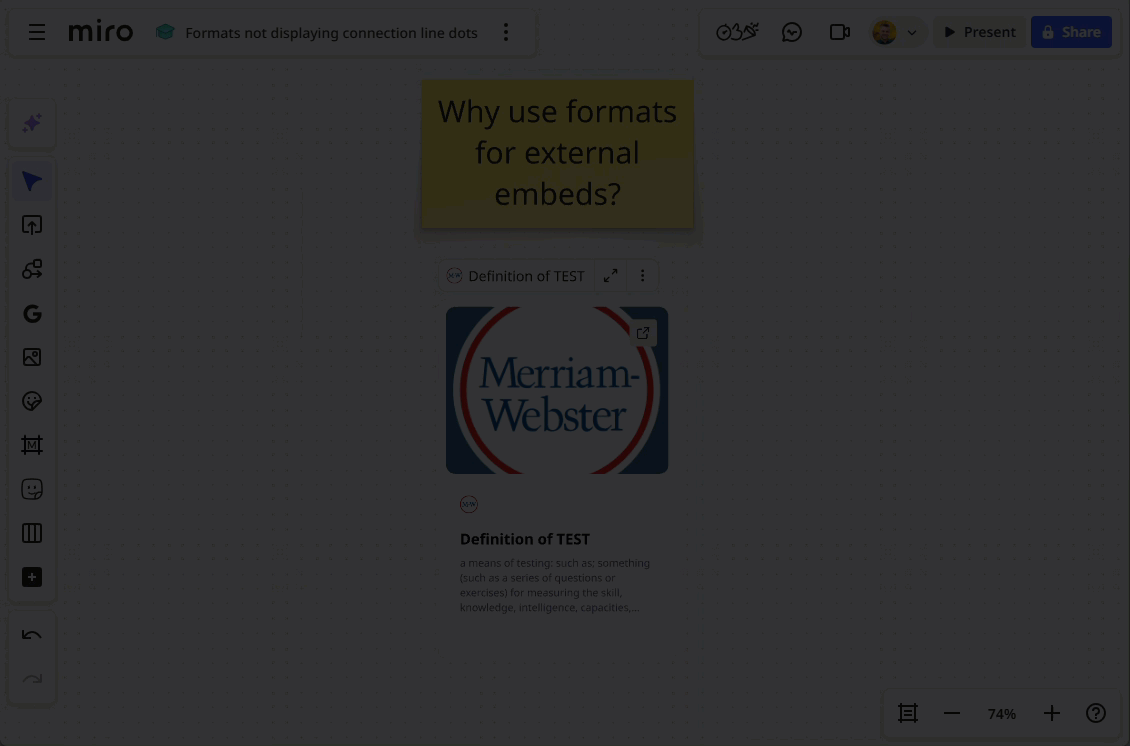 As you can see, this is a poor experience and will surely lead to many support tickets, even though it is the expected behavior by design — from both Miro's and the external resource owners' perspectives.