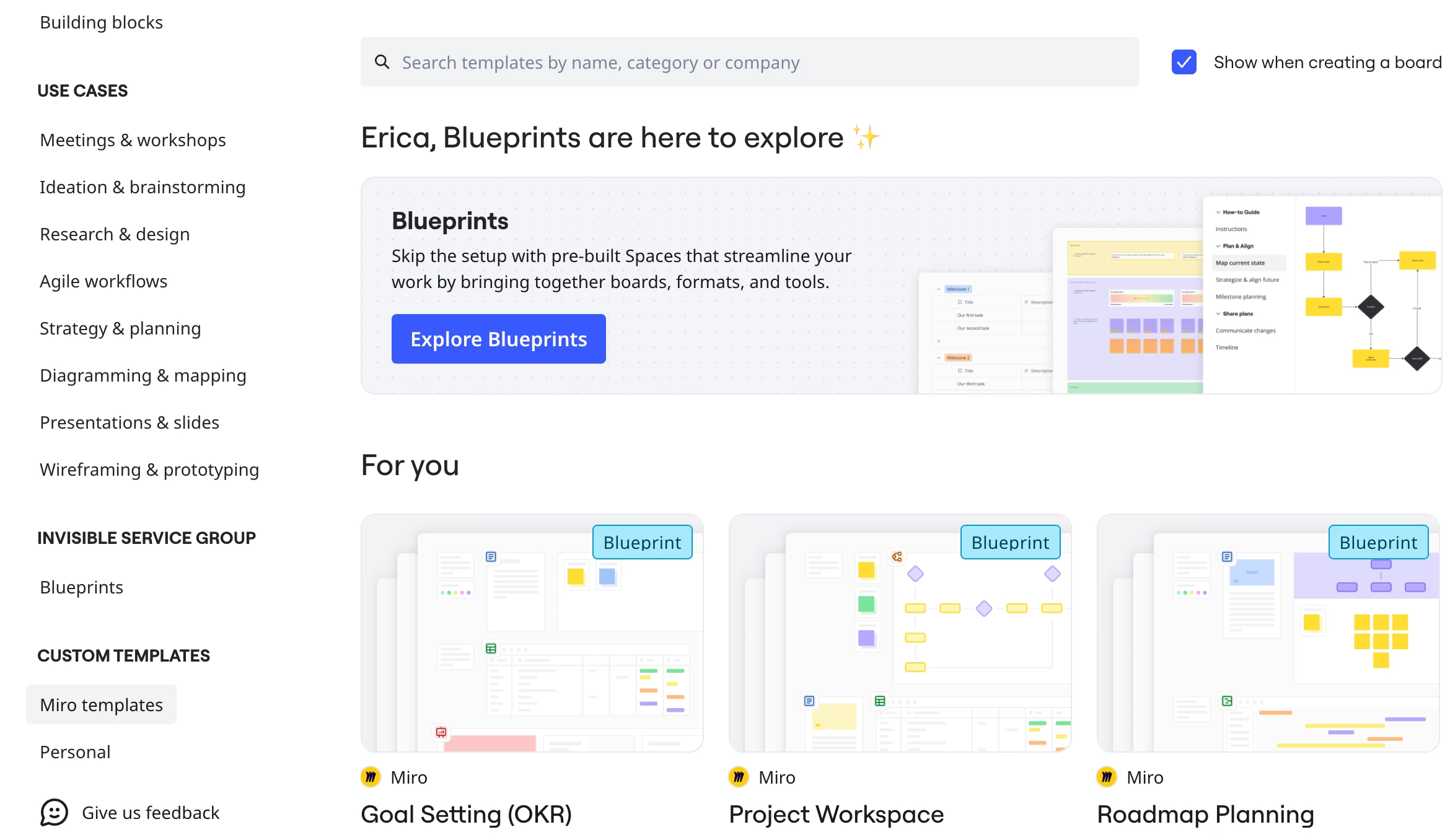 If you're regularly reusing the same structure for training, it's a good idea to convert those boards into Miro templates. This allows trainers to create new boards directly from the template without modifying the original. It also keeps your workspace cleaner and ensures consistency across sessions.