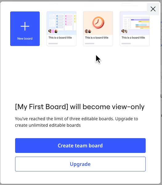 As a result, one of the boards became uneditable due to the free plan board limit, and this directly affected the quality of the work that was submitted for grading, I can't copy it to the new account's space because I previously submitted the board link, and changing the link will ask me to resubmit it on Moodle, while my that time and deadline were on the weekend..