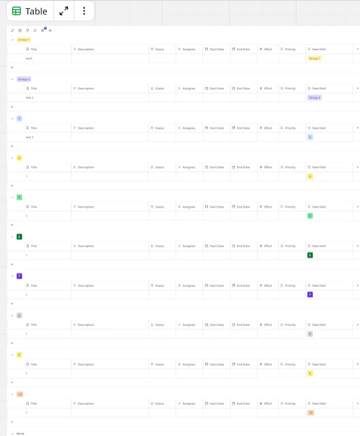 I’m creating a table and I need to group tasks by functionalities. However, I can’t see more than 6 of the groups I created in the table layout (there are 10 groups).
