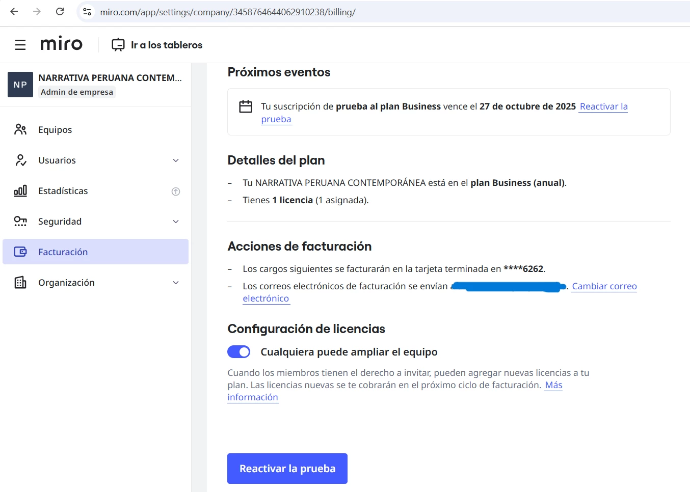 I only used Miro for a university class; I don't need it anymore. Supposedly, I was able to cancel the subscription, but I'm worried about not being able to remove my card number. Could you tell me if I've already unsubscribed and won't be charged? Please help. This is what appears in my profile, under the billing tab: