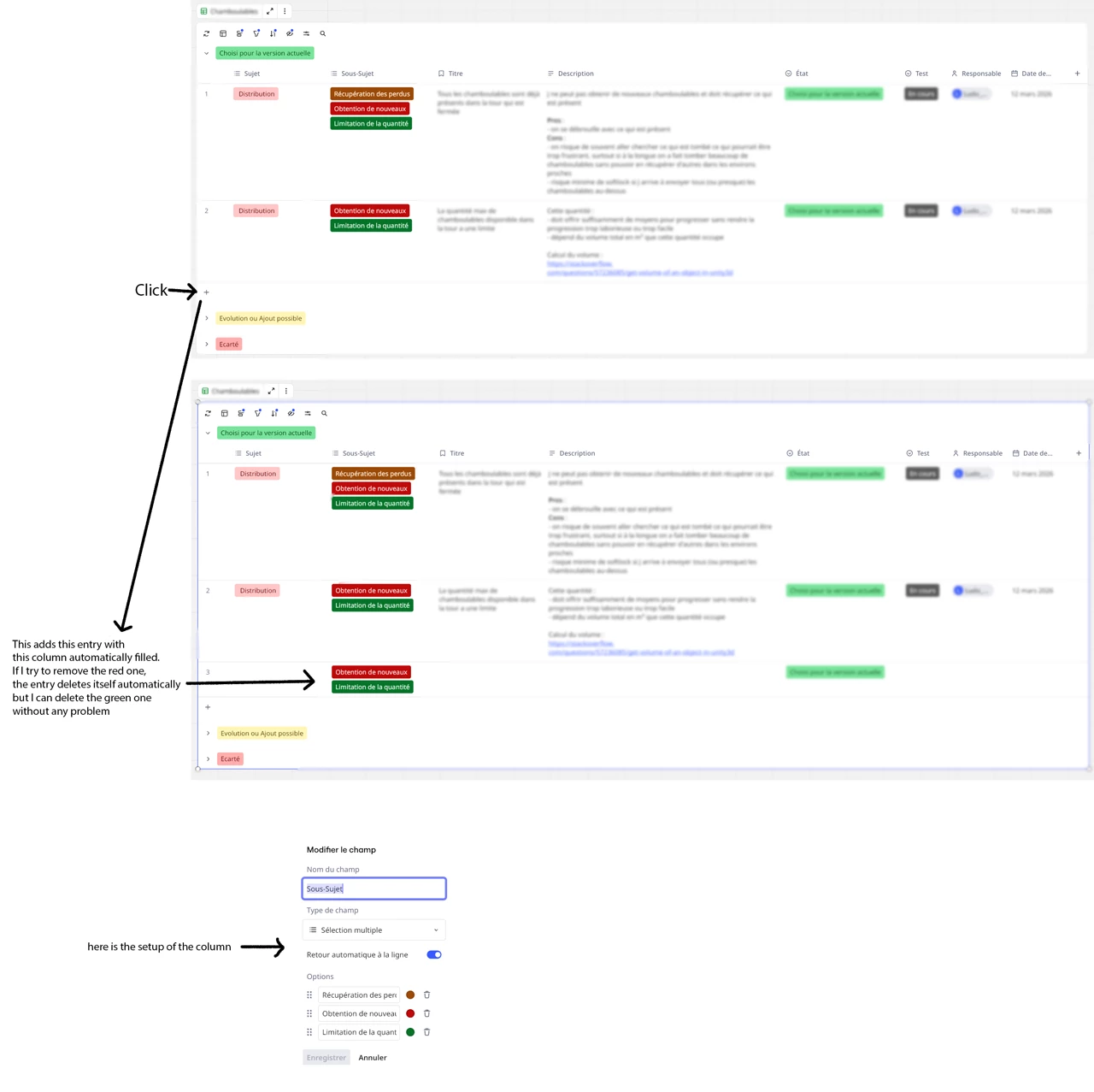 Here are images showing the problem with a description of what I do (related column is named “Sous-Sujet”):