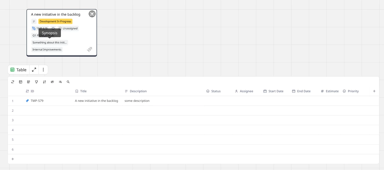 If I click on the + in the table I don’t see Jira fields, just Miro fields and custom fields, but no ability to display the Synopsis field from Jira in Miro table.
