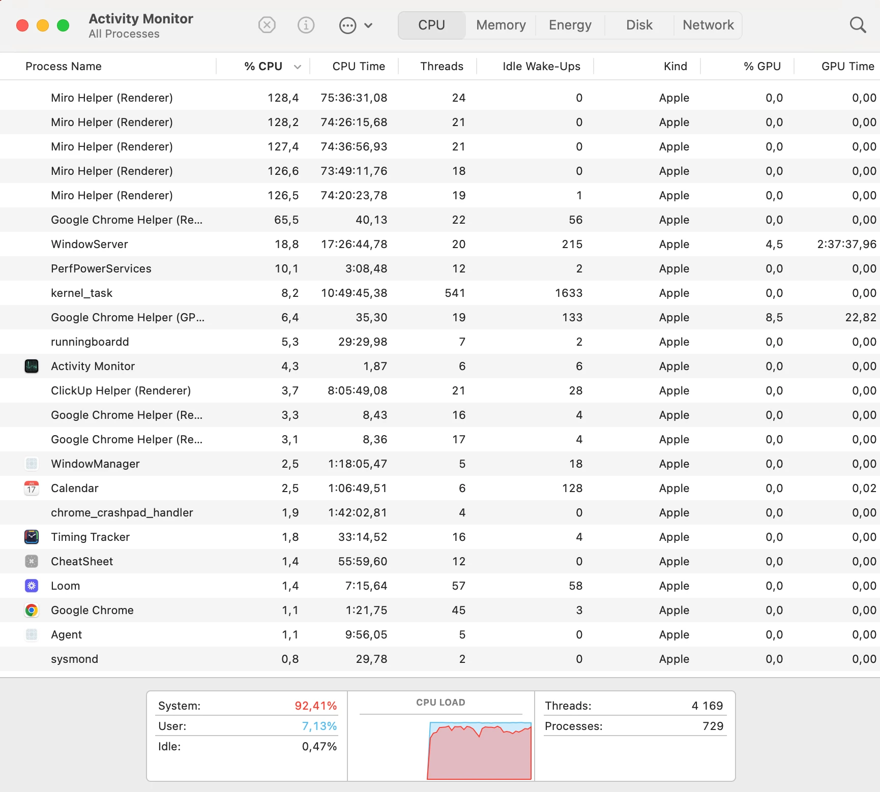 This can help pinpoint whether Miro (browser or app) is causing sustained high CPU/GPU usage—even when idle.