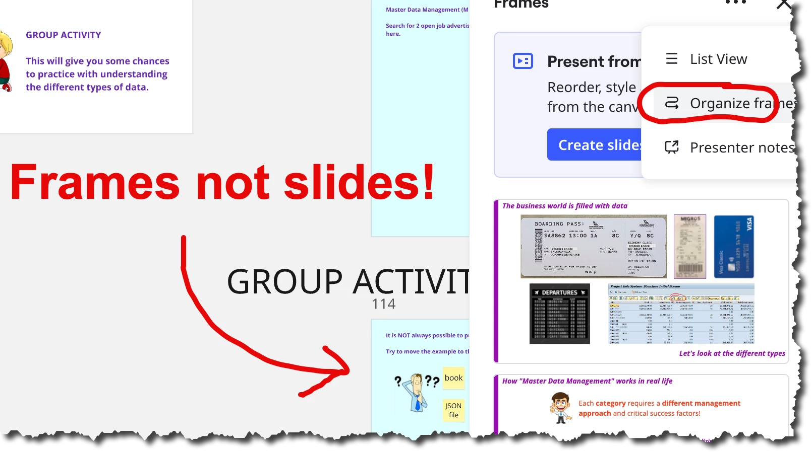 Because of the reference to SLIDES on that panel, my guess is that the Miro product people think that frames are somehow used for slides.