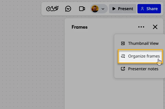- Organize Frames action missing from frames list panel