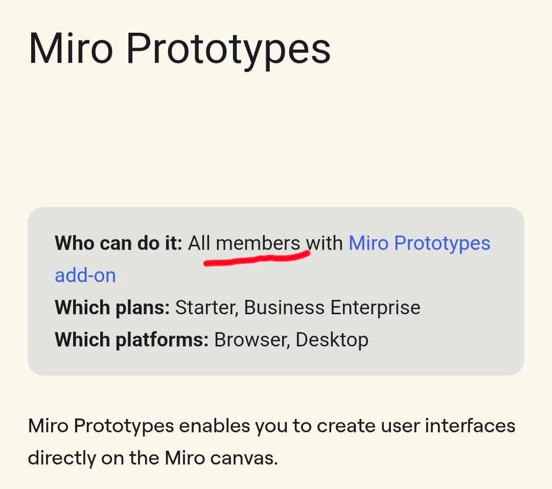 The article: https://help.miro.com/hc/en-us/articles/26654269713682-Miro-Prototypes
