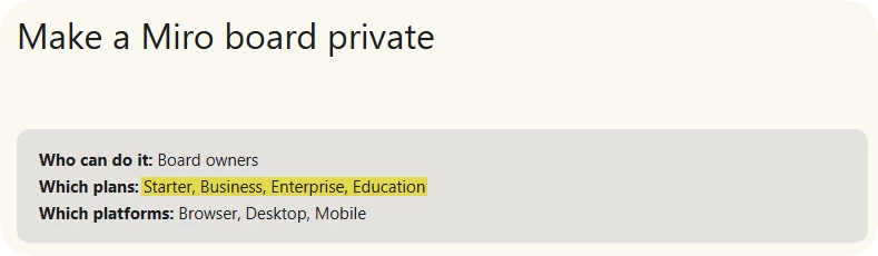 Miro seems to have some serious privacy issues. My collaborators can see private boards that they should not have access to, and I can see boards from my collaborators that I should not have access to.