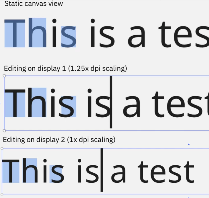 Exact behavior varies with the browser and display. Different DPI scaling factors (in the OS) also affect the offset (here with Noto Sans, Vivaldi, Fedora 43):