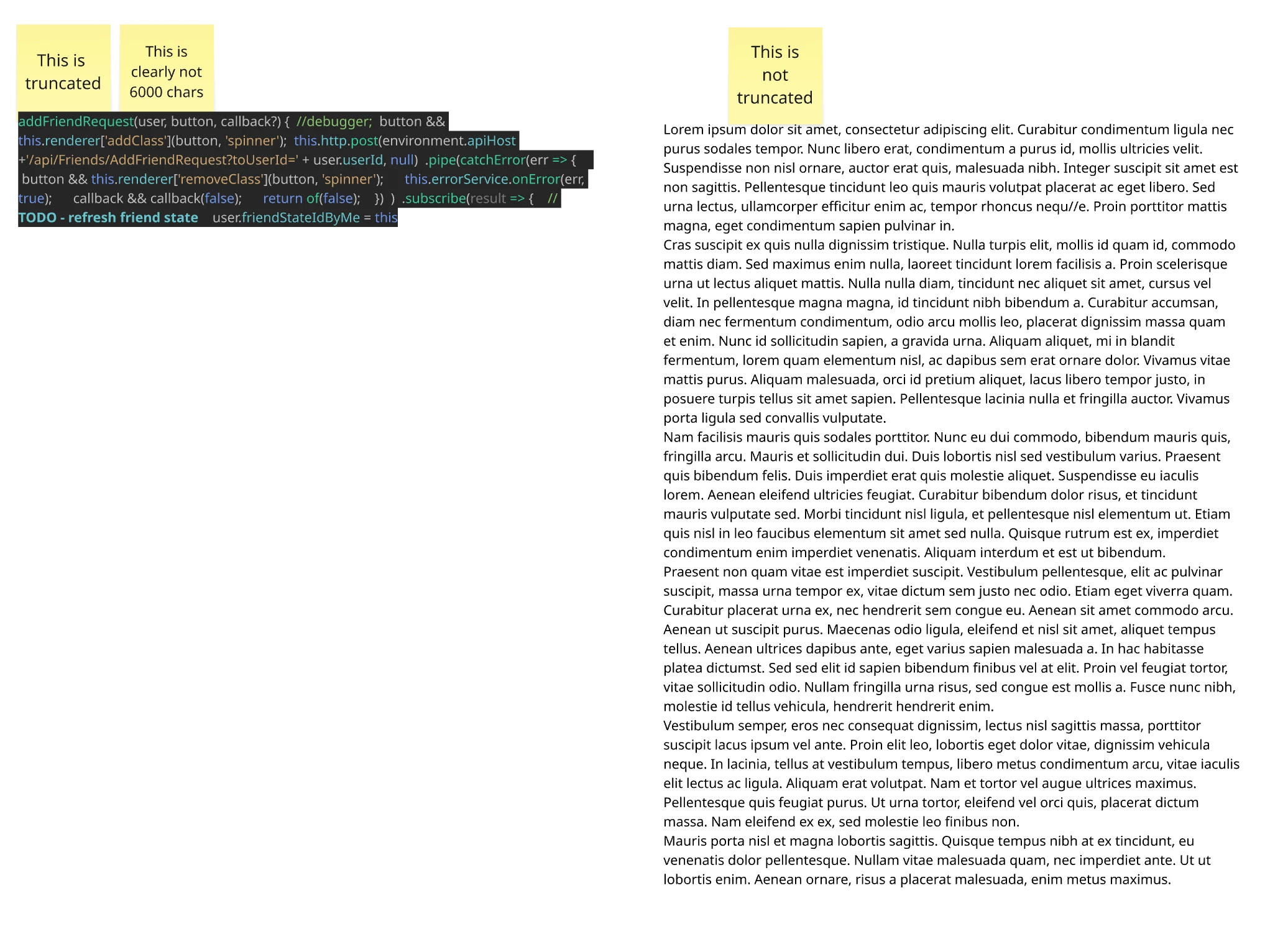 There is definitely a bug in the truncation function. If you just use plain text it seems to respect the limit, but the moment you start pasting things like your configuration json files that contain URL’s and code structure it falls over. Pretty bad for note taking - will be considering other products if this isn’t fixed soon.