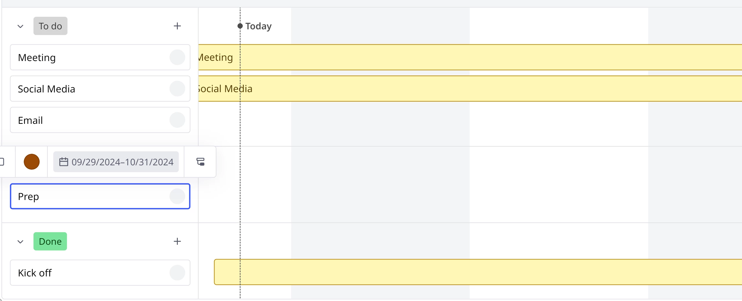 I just started a template of a timeline in Miro, I have more than 3 items on this timeline, the first 3 have the timeline bar graph on my table, but all other items aren't showing the bar graph on the table?