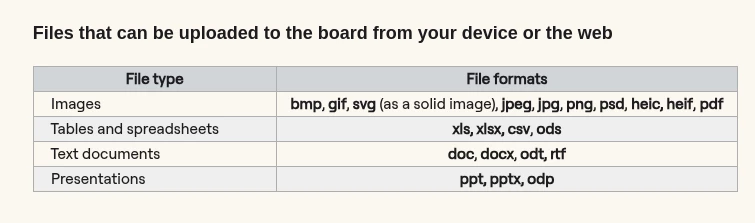Hi! I’ve notice that currently Miro API allows to upload images only in some formats like jpeg, svg, png. It will be nice to have the ability to add e.g BMP or different formats that Miro supports on webUI and mention below :)