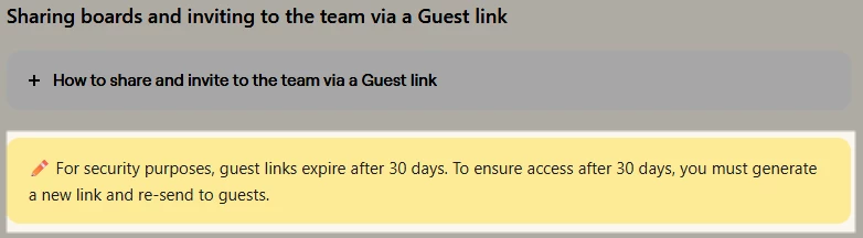 - Ability to manually reset share links: For optimal security it would be good to be able to reset public and guest links manually - not have to create a duplicate board and re-add old guests as a workaround