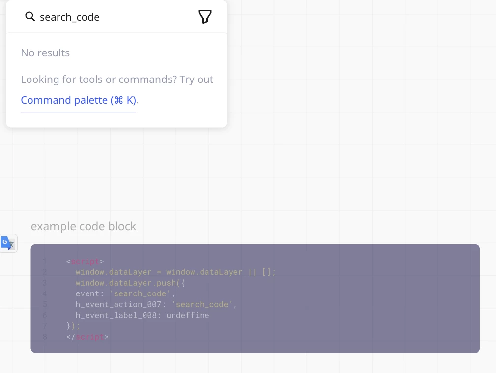 I would like to have the search text in code block function so my stakeholders can quickly search what tracking concept already exist faster.